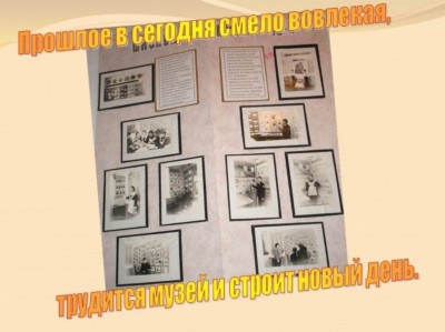 Экспозиция "Школьный музей 70-х годов". На стенде размещены фотографии экспозиций музея школы №241