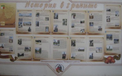 Экспозиция, посвящённая истории Татарского района и Дню Победы_"История в граните"_Представлены фотоматериалы памятников Татарского района и история их создания