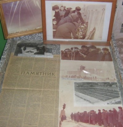 Экспозиция к 35-летию открытия мемориального комплекса города Татарска_Представлены фотодокументы, статья Памятник Н.Я.Савченко из газеты Ленинская трибуна от 25 декабря 1981 года