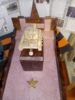 Члены совета музея, ребята из объединений «Умелые руки», «Юный художник» подготовили не только новые экспозиции, но и создали макет мемориала «Павшим в боях». На уроках технологии мальчики подготовили все эскизы для выставочного материала. Модель танка для постамента смастерил ученик 6б класса Щукин Артём под руководством Козлова Ю.Н., а весь комплекс подготовлен мальчиками 6б класса.