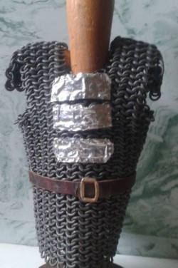 Макет кольчуги, уменьшенный в 20 раз. Экспонат подарен бывшим руководителем школьного музея Галёвым Ю.В.