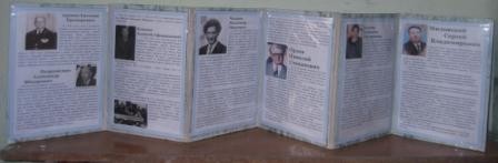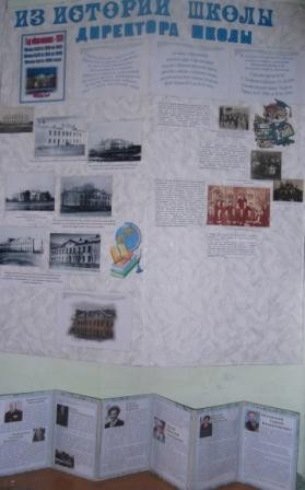 Экспонат представлен в виде раскладушки, где размещён материал о директорах школы от 1939г до наших дней.