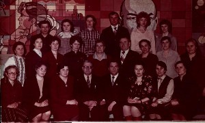 1 ряд (слева направо): Ерёмина А.Д. (учитель рус.яз. и литературы), Мицкевич Н.П. (учитель биологии), Орлова М.И. (учитель математики, педагог-организатор), Орлов Н.С. (учитель физики), Чаплин В.И. (директор школы, учитель истории), Кочергина В.Б. (учитель нач. классов), Кононенко Г.И. (старшая пеонервожатая, учитель рус.яз. и литературы), Коваленко Ю.З.(учитель трудового обучения)