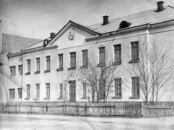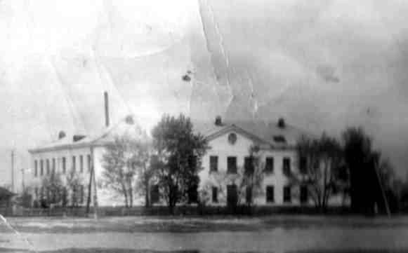 -Я очень хорошо помню нашу школу, которая размещалась в двух деревянных зданиях напротив вокзала. Эти здания имели свои названия: «Маленькая школа» и «Большая школа». Парты в школе были деревянные, некрашеные, пол тоже не крашен. Его мыли с помощью ножей и тёрок. Отопление было печное. В каждом классе стояла железная печка. Мы очень любили на переменах обогреваться у печки. Столовой не было, лишь иногда приносили булочки и пирожки. Хорошо помню первую школьную форму: хлопчатобумажное коричневое, синее или чёрное платье и фартук. Писали школьники простыми ученическими ручками пером № 11, макая в чернила, которые готовили сами: кто из копировального карандаша, кто из чернильного порошка. Учебников было мало: по одному стандарту на 10-12 человек. Тетрадей почти не было, и потому ребята радовались, если за хорошую учёбу награждали ручкой, карандашом или тетрадкой.
